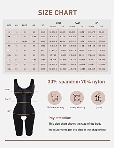 FeelinGirl Shapewear Damen Bauchweg Full Body Shaper mit 3 Haken Verstellbar Miederbody Stark Formend Ganzkörper Schenkel Schlankmacher Po Push Up Formende Bodys Große Größe