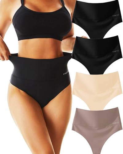 FINETOO 4er Pack Bauchweg Unterhose Damen High Waist String Seamless Shapewear Hohe Taille Unterwäsche Frauen Nahtlose Tangas Mehrpack S-3XL