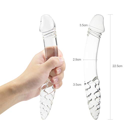 Doppeldildo: Dieser Doppeldildo hat zwei Köpfe in unterschiedlicher Form, schön, gut geformt und viel Liebe zum Detail. Ein Kopf des Kristallglasdildos ist eine realistische Eichel, die Ihnen ein echtes Gefühl vermittelt. Der andere Kopf hat eine spiralförmige Textur, die Ihnen mehr sexuelle Stimulation und ein welliges Gefühl eines Wirbels verleiht.