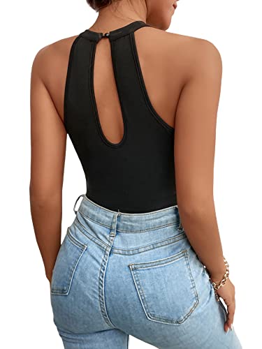 GORGLITTER Neckholder Body Damen Mesh Bodysuit Ohne Ärmel Bodies Party Oberteil mit Spitzen Top Overall