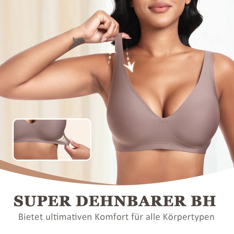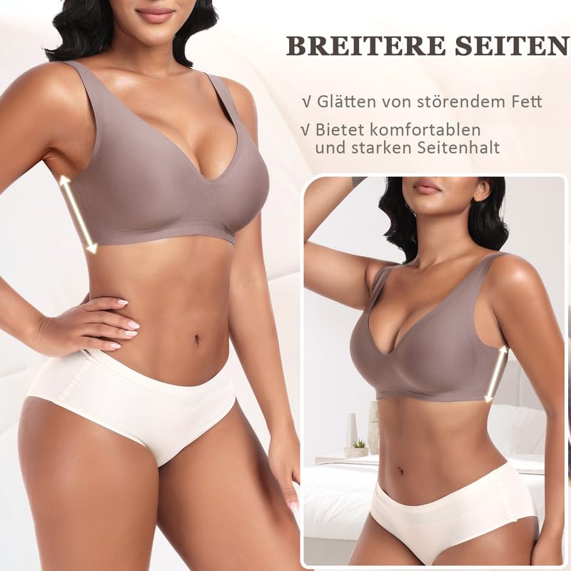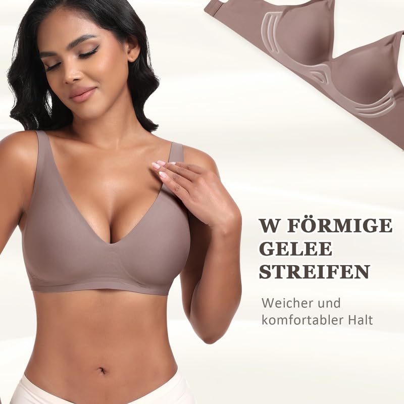 Jiuday Tiefer V Push Up BH ohne Bügel for Damen Bequemer BH für GroÃe Brüste Starker Halt Seamless Soft Bügelloser Gepolstert Nahtloser Glatter BH