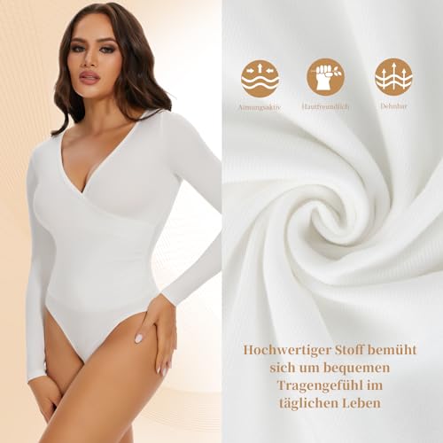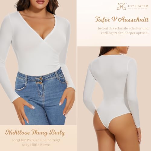 Joyshaper Damen Langarm Body Sexy V-ausschnitt Bodysuit Top Elegant Stringbody Longsleeve Shirt für Frauen