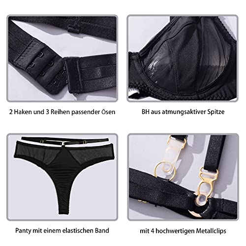 Kimlyf Strapsen Dessous Set für Damen Dessous Sexy Unterwäsche Reizwäsche Set mit Strapsen mit BH und Slip mit Spitze mit Beinbänder