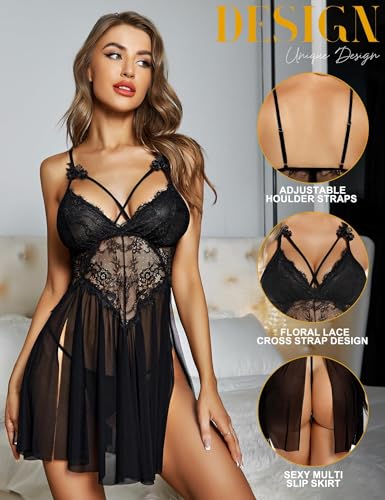 RSLOVE Frauen Sexy Babydoll Spitze Lingerie Nachthemd Kleid